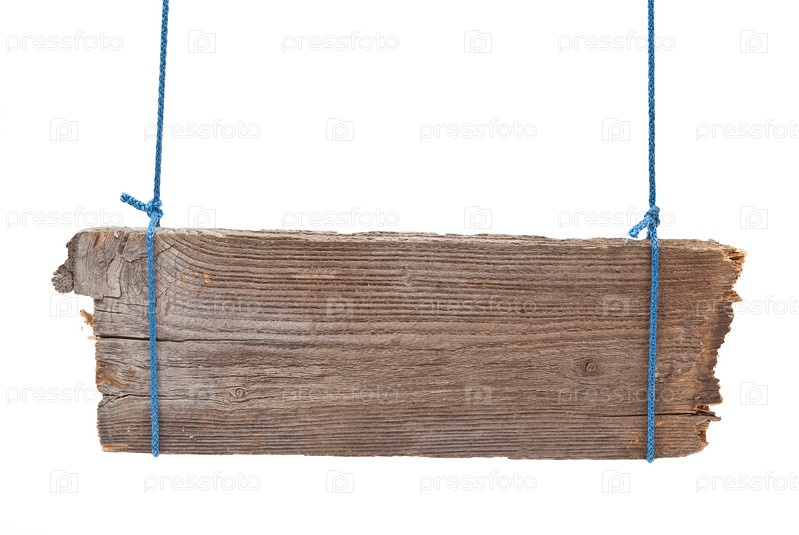 Подвешенная деревянная вывеска на белом фоне