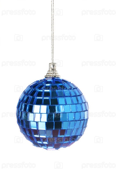 Синий зеркальный новогодний шар изолирован на белом фоне