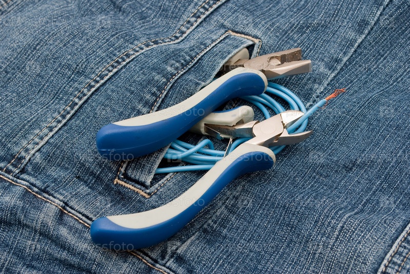 Инструменты для ремонта, лежащие на джинсовой куртке