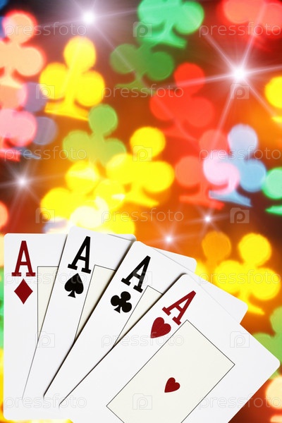 Четыре туза на фоне из огней в форме треф