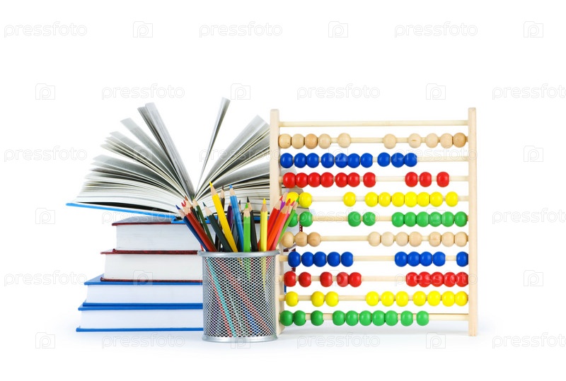 Детские счеты, карандаши и книги