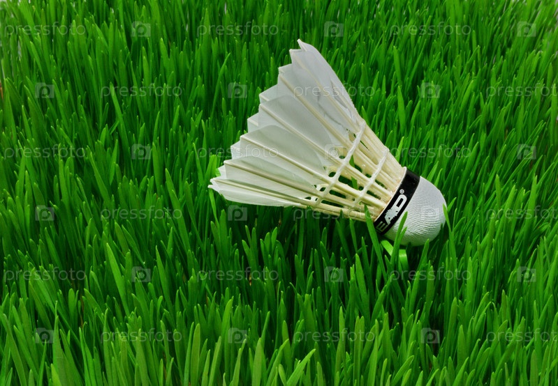 Волан для игры в бадминтон на зеленой лужайке