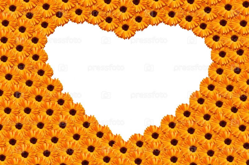 Сердце, выложенное из желтых цветов