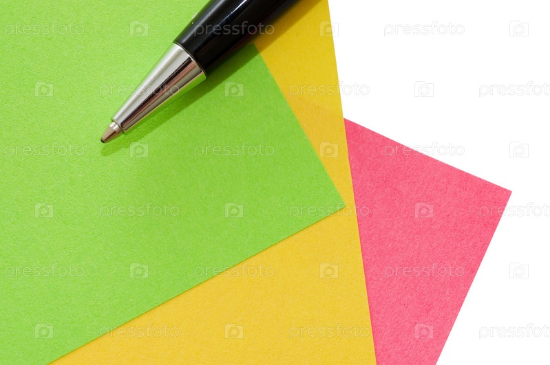 Ручка, лежащая на цветных стикерах