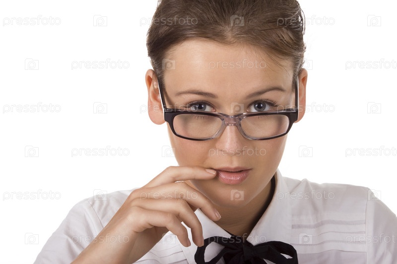 Девушка в очках приложила палец к губам
