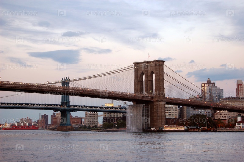 Бруклинский мост на реке Гудзон в Нью-Йорке