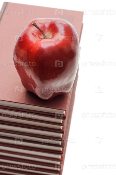 Красное яблоко, лежащее на стопке книг