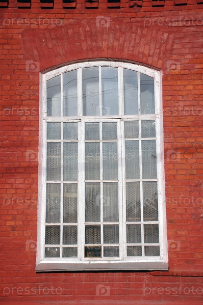 Старое деревянное окно в стене кирпичного дома