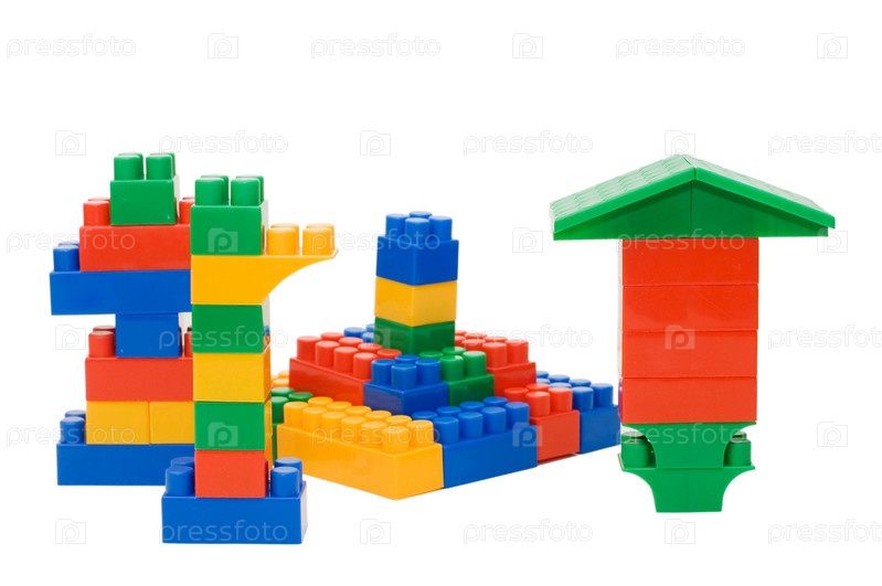 Разноцветный детский конструктор на белом фоне