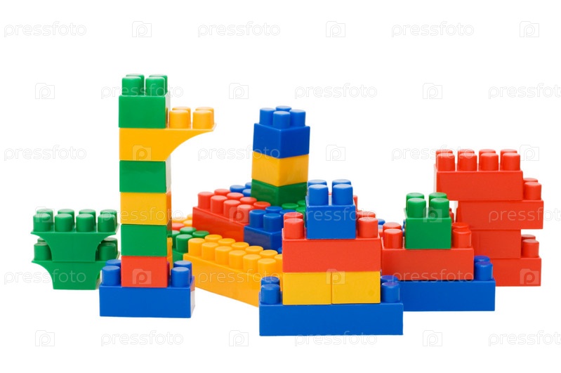 Разноцветный детский конструктор на белом фоне