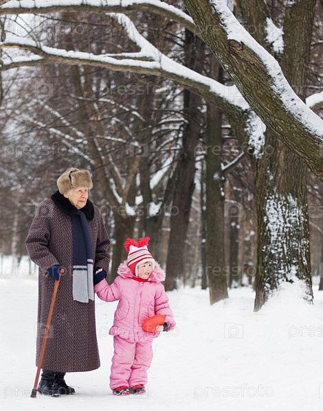 Портрет бабушки с внучкой в парке