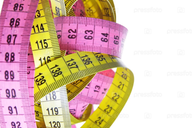 Розовая и желтая сантиметровая лента, изолированные на белом фоне