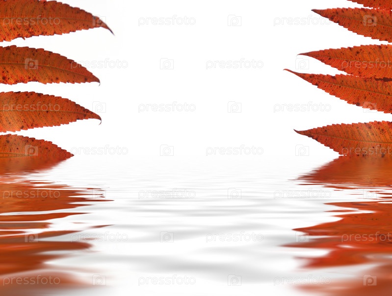 Фон из осенних листочков с отражением в воде