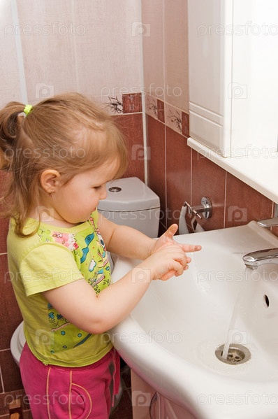 Девочка моет руки