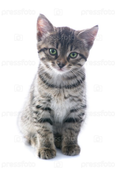 Серый котенок на белом фоне