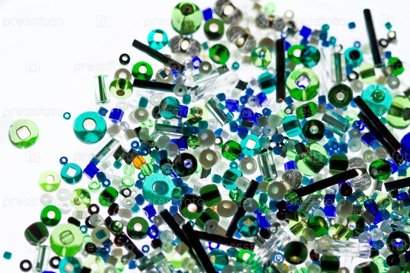 Разноцветный бисер на белом фоне