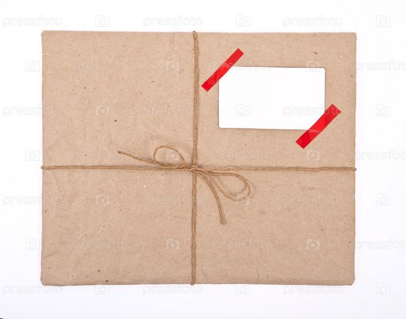 Почтовая посылка, упакованная в грубую бумагу и перевязанная бичевкой