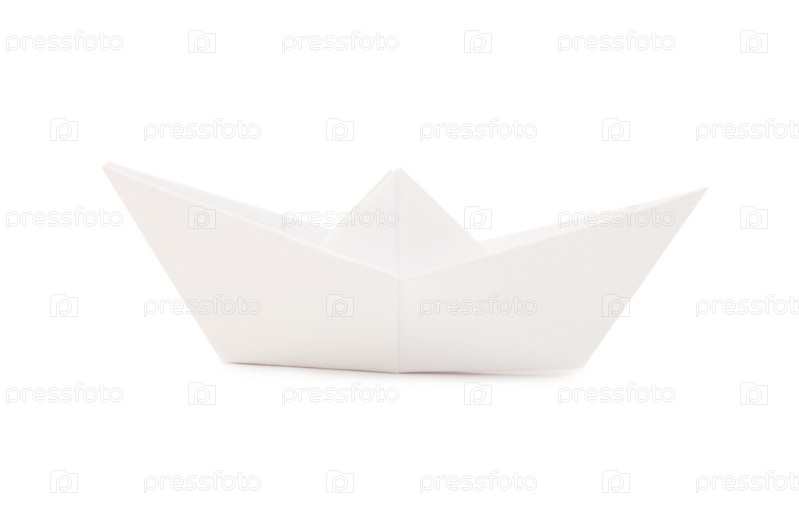Бумажный кораблик на белом фоне