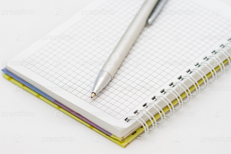 Ручка и ежедневник на белом фоне