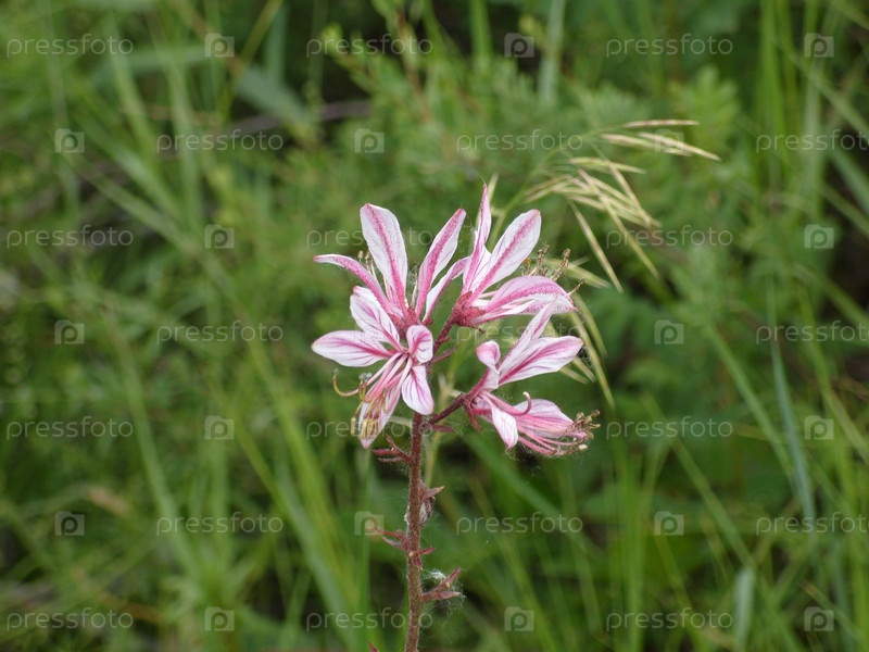 Розовые цветы крупным планом на фоне зеленой травы