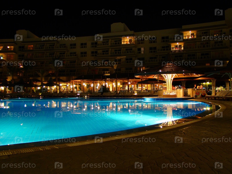 Бассейн в египетском отеле ночью