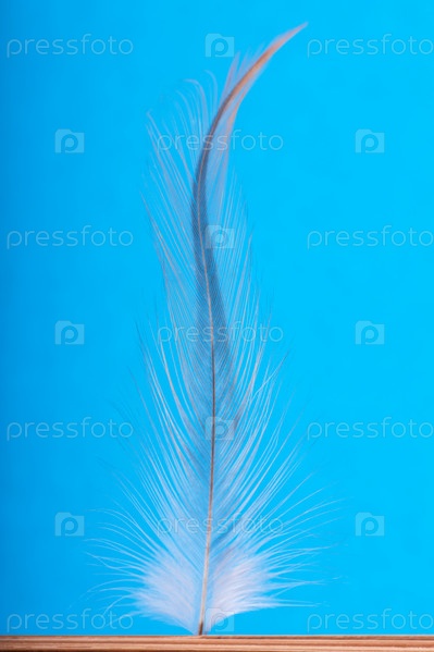 Крупным планом перо на голубом фоне