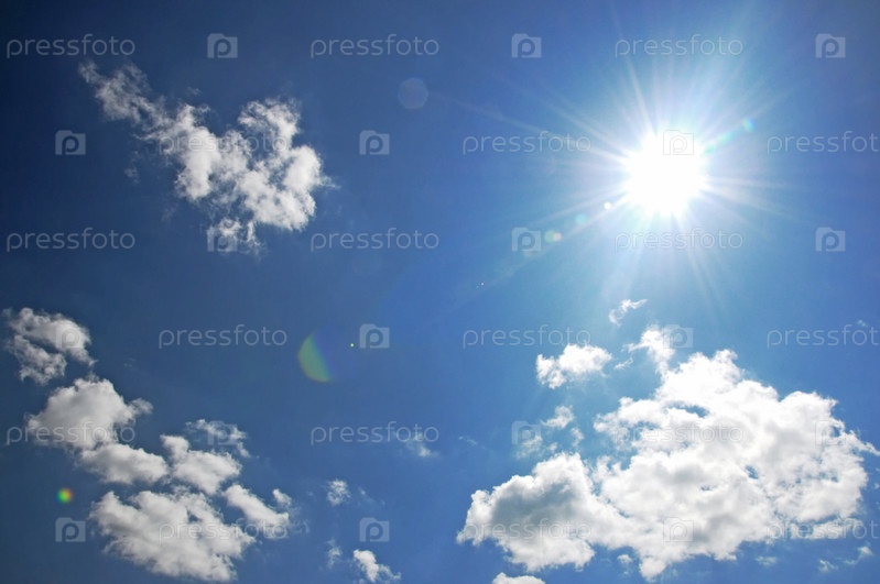 Фотография голубого неба с солнечными лучами