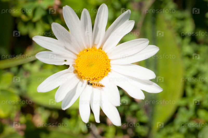 Белая ромашка на цветочной поляне