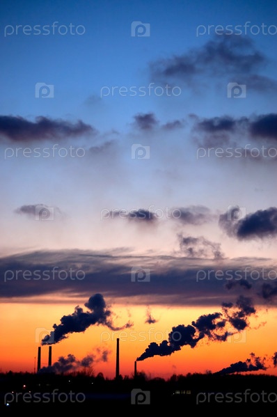 Трубы с дымом на фоне неба