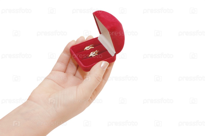 Красная коробка с серьгами в руке