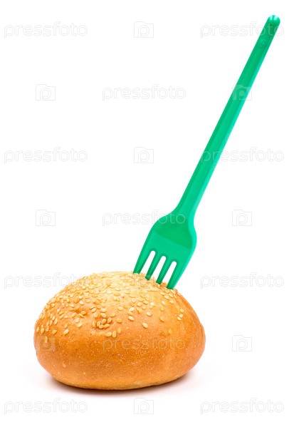 Вилка в булочке с кунжутом изолирована на белом фоне