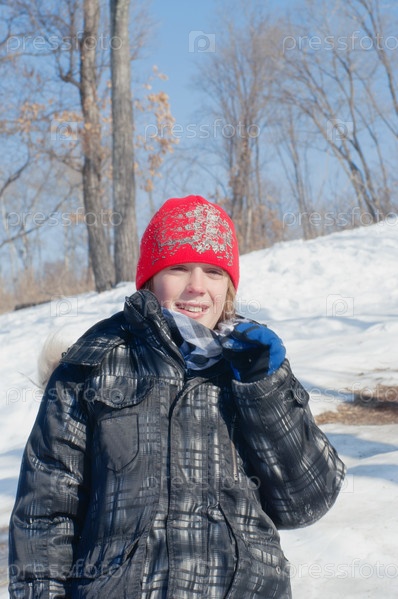 Портрет мальчика на фоне зимнего леса