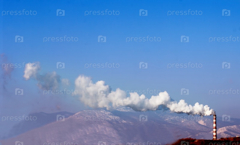 Дым из трубы на фоне горных вершин