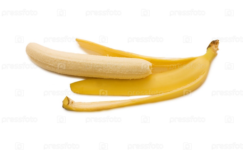 Очищенный банан на белом фоне