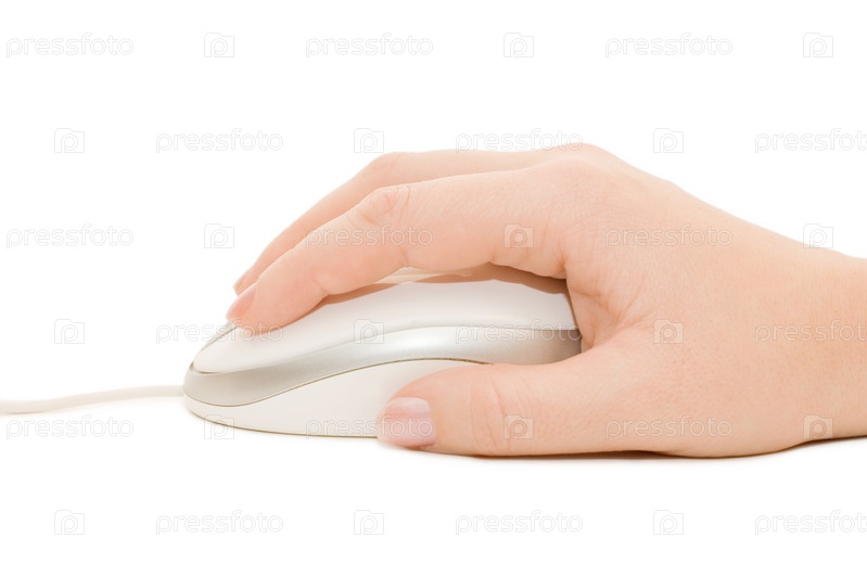 Рука с компьютерной мышью, изолированная на белом
