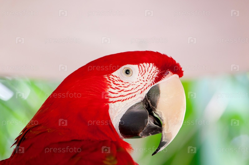 Яркий красный попугай ара крупным планом