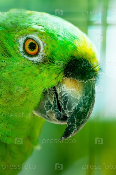 Ярко-зеленый попугай крупным планом