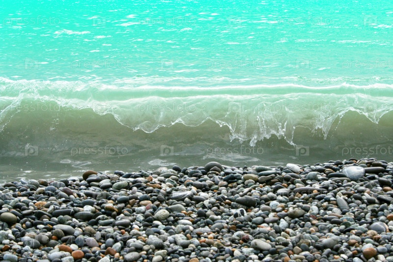 Небольшая волна накатывает на галечный пляж