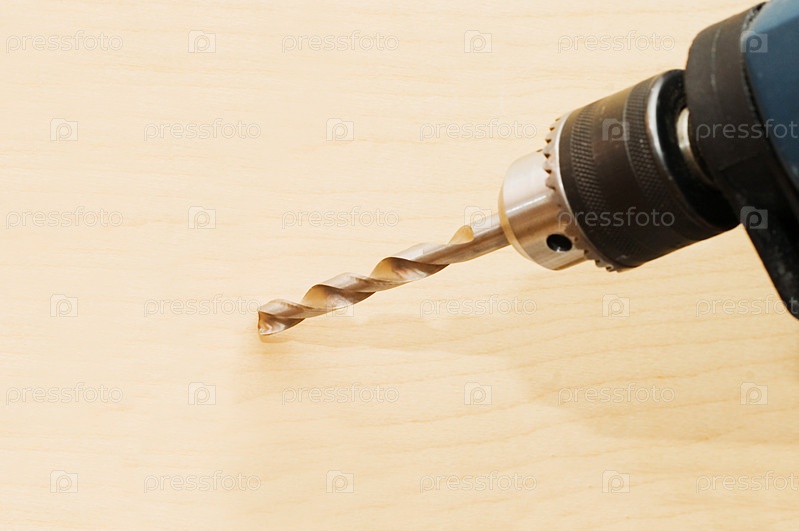 Сверло делает отверстие в деревянной поверхности