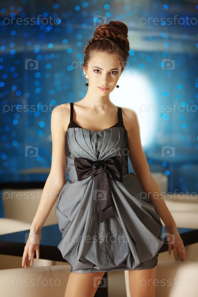 Красивая девушка в сером платье
