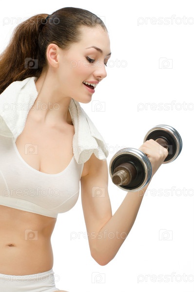 Молодая девушка с гантелей