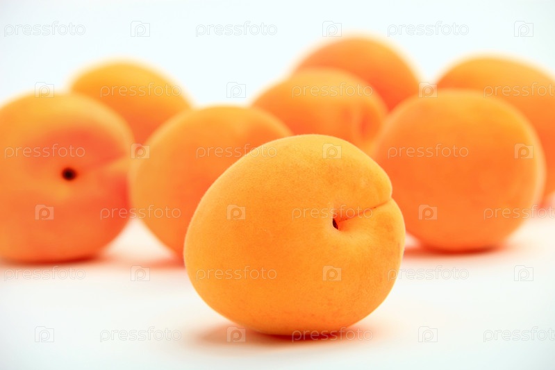 Спелые абрикосы на белом фоне