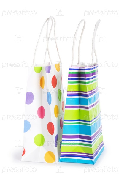 Разноцветные пакеты, изолированные на белом фоне