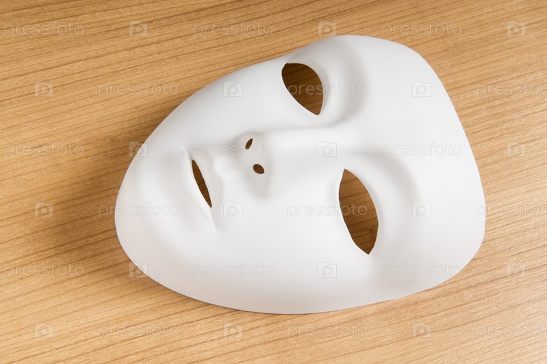 Театральная маска на деревянной поверхности