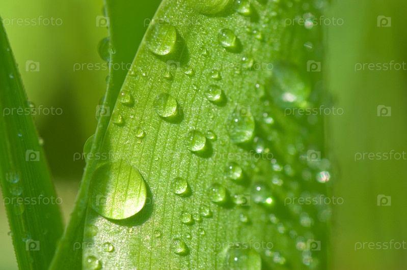 Зеленые листья с каплями воды