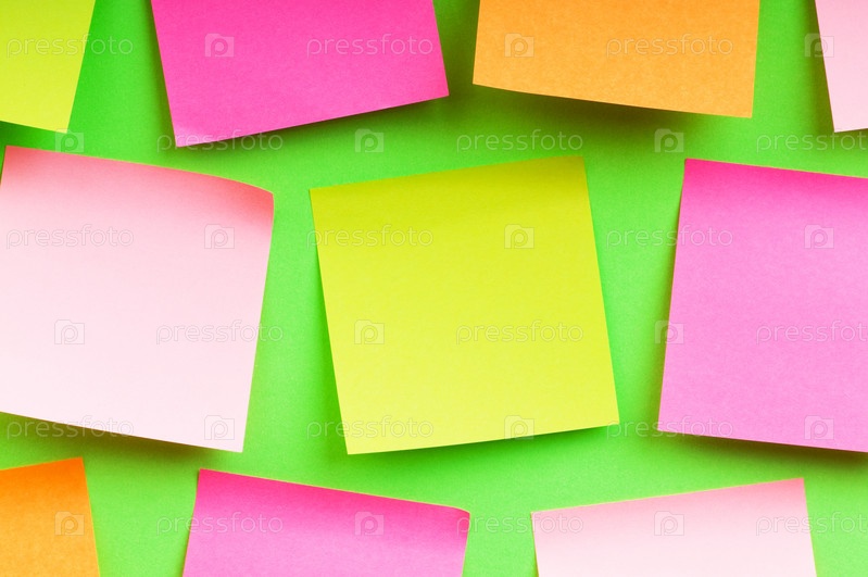 Разноцветные стикеры на зеленом фоне