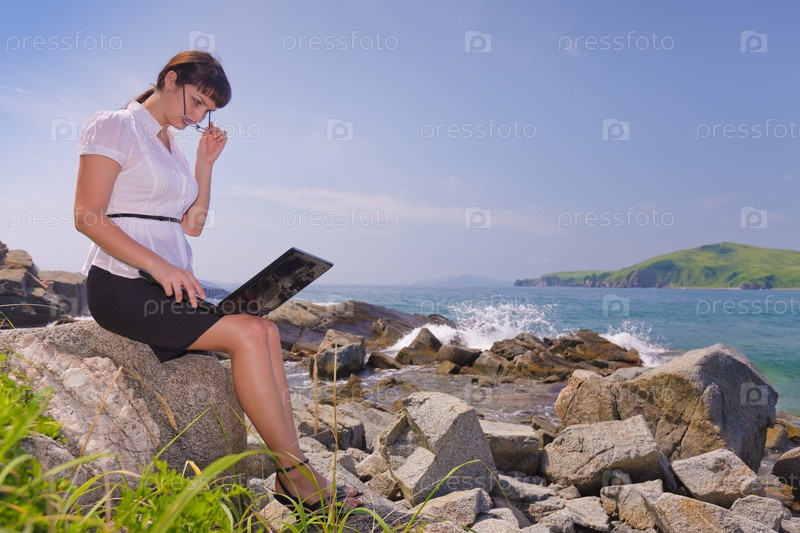 Девушка с ноутбуком на природе
