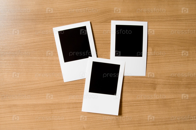 Полароидные фоторамки на деревянной поверхности крупным планом