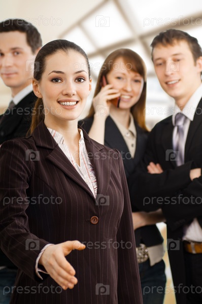 Успешная бизнес леди на фоне коллег