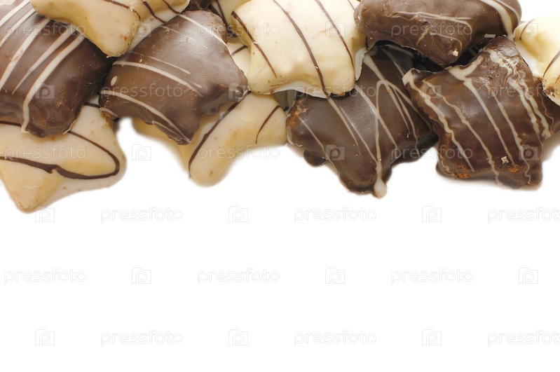 Печенье с шоколадной глазурью на белом фоне